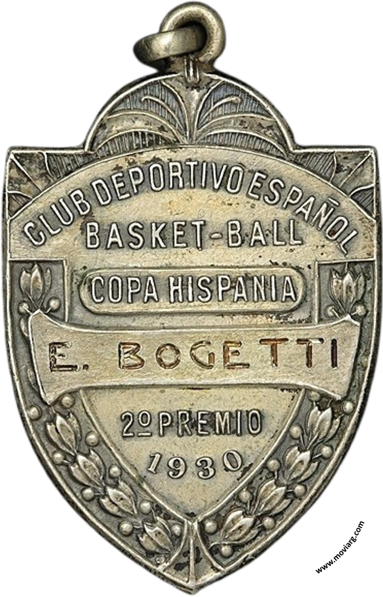 Anverso: Campo: C.D.E. Firma: PISANI Reverso: CLUB DEPORTIVO ESPAÑOL / BASKET-BALL / COPA HISPANIA / [ E. BOGETTI ] / 2° PREMIO / 1930 Referencia: | |
