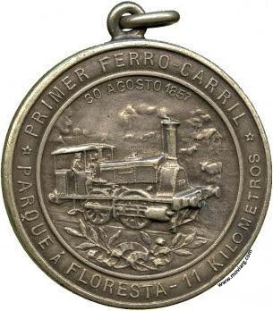 Anverso: PRIMER FERRO-CARRIL / PARQUE Á FLORESTA - 11 - KILOMETROS / 30 AGOSTO 1857. Firma: J. GOTTUZZO Reverso: FERRO-CARRILES ARGENTINOS - 50° ANIVERSARIO - 30 AGOSTO 1907 / LONGITUD ACTUAL 22,500 KILOS. Referencia: | |