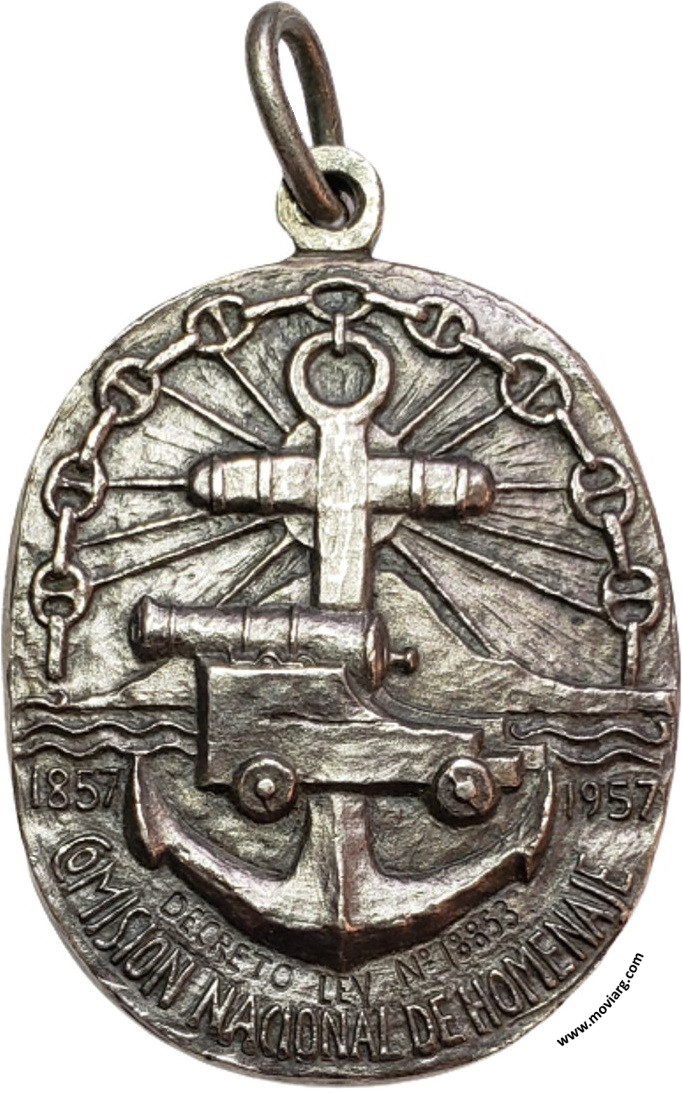 Anverso: GUILLERMO / BROWN. Firma: LUIS I. AQUINO Reverso: 1857 / 1957 / DECRETO LEY Nº18853 / COMISION NACIONAL DE HOMENAJE Referencia: | |