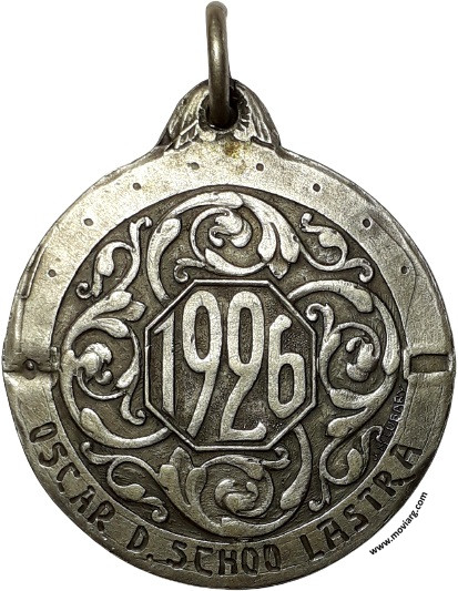| Año: 1926 Deportes Metal: Plateado - Peso: 11.83gr - Módulo: 28.44mm - Espesor: 2.25mm - Rotación: 12hrs Grabador: Jorge María Lubary | |