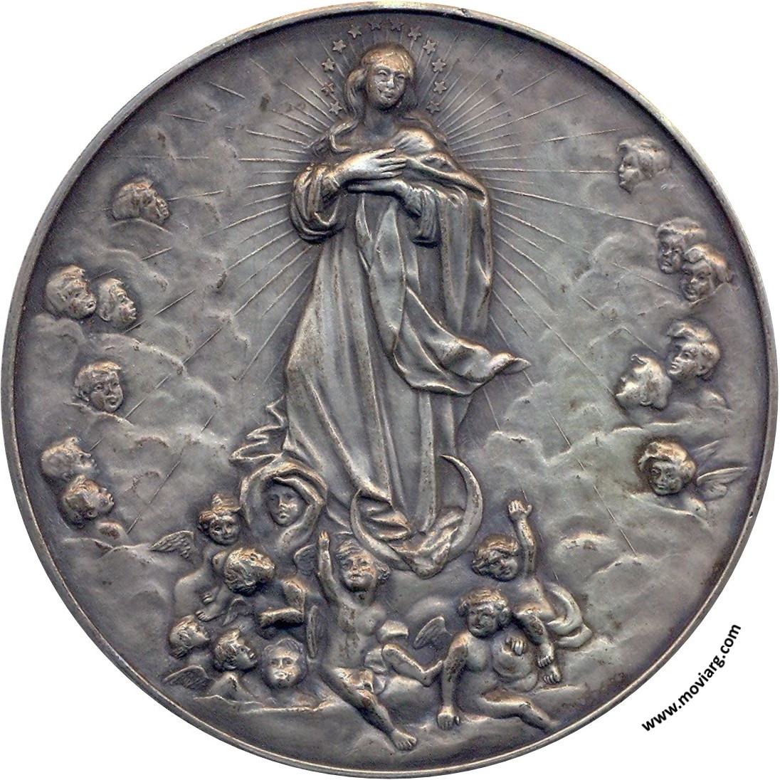 Anverso: Reverso: 50° ANIVERSARIO DE LA DEFINICIÓN DEL DOGMA DE LA INMACULADA. Campo: 1854 / 1904. Firma: BELLAGAMBA Y ROSSI / BUENOS AIRES Referencia: | |