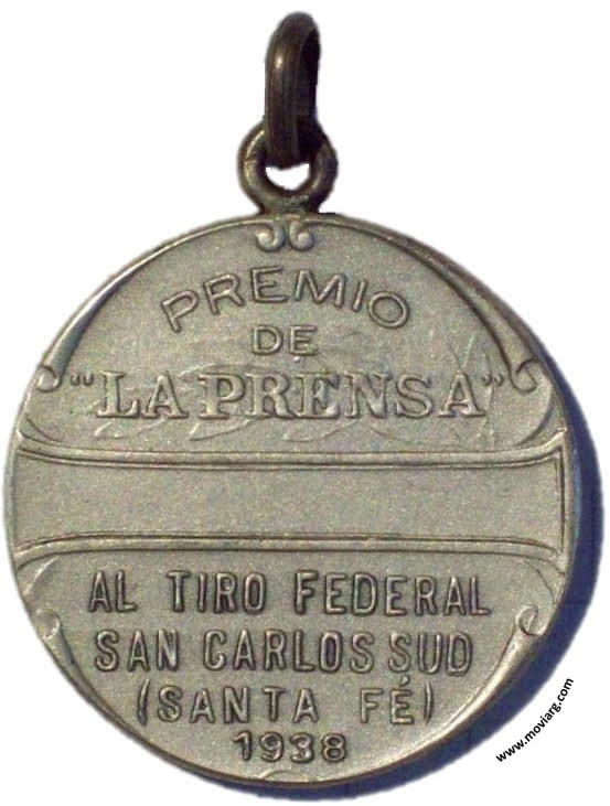 Anverso: VERITAS · JUSTITIA · HUMANITAS. Firma: C. ROSSI Reverso: PREMIO / DE / " LA PRENSA " / AL TIRO FEDERAL / SAN CARLOS SUD / ( SANTA FÉ ) / 1938 Referencia: | |