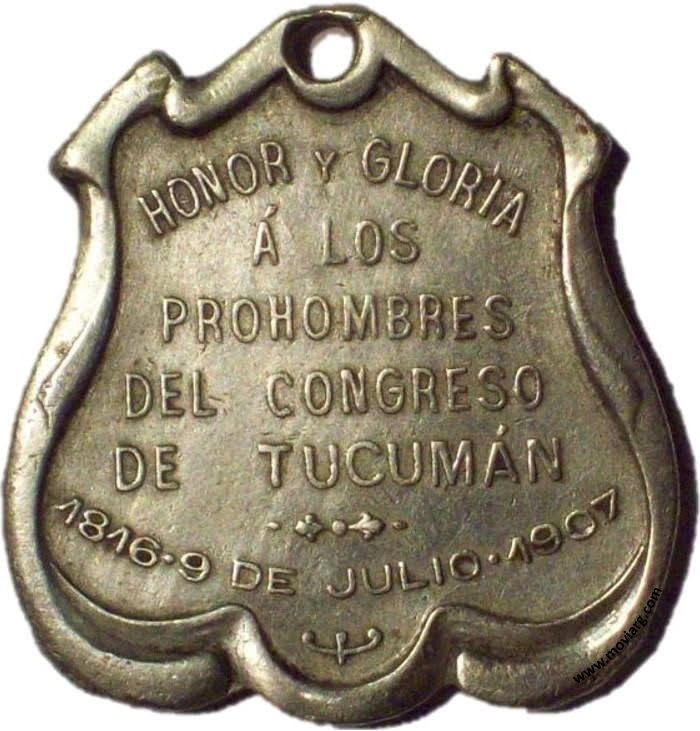 Anverso: Firma: BELLAGAMBA / Y ROSSI Reverso: HONOR Y GLORIA / Á LOS / PROHOMBRES / DEL CONGRESO / DE TUCUMÁN / 1816 · 9 DE JULIO · 1907 Referencia: | |