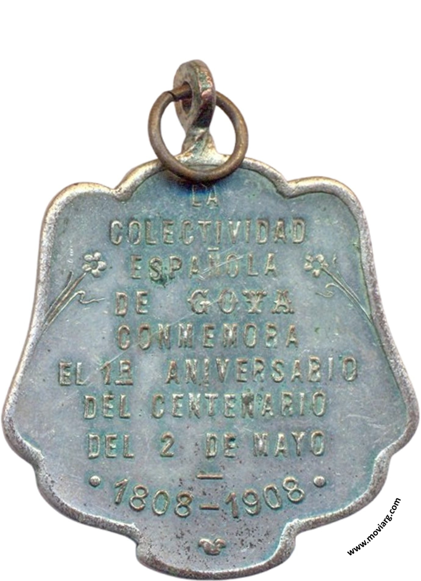 Anverso: Firma: BELLAGAMBA Y ROSSI Reverso: LA / COLECTIVIDAD / ESPAÑOLA / DE GOYA / CONMEMORA / EL 1R. ANIVERSARIO / DEL CENTENARIO / DEL 2 DE MAYO / 1808 - 1908 Referencia: | |