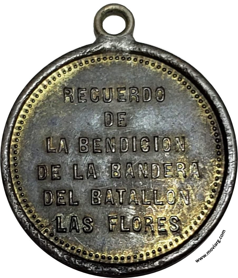 Anverso: LA COMISION DE DAMAS 16 DE JULIO DE 1897. Firma: ORZALI B. Y C. Reverso: RECUERDO / DE / LA BENDICION / DE LA BANDERA / DEL BATALLON / LAS FLORES Referencia: | |