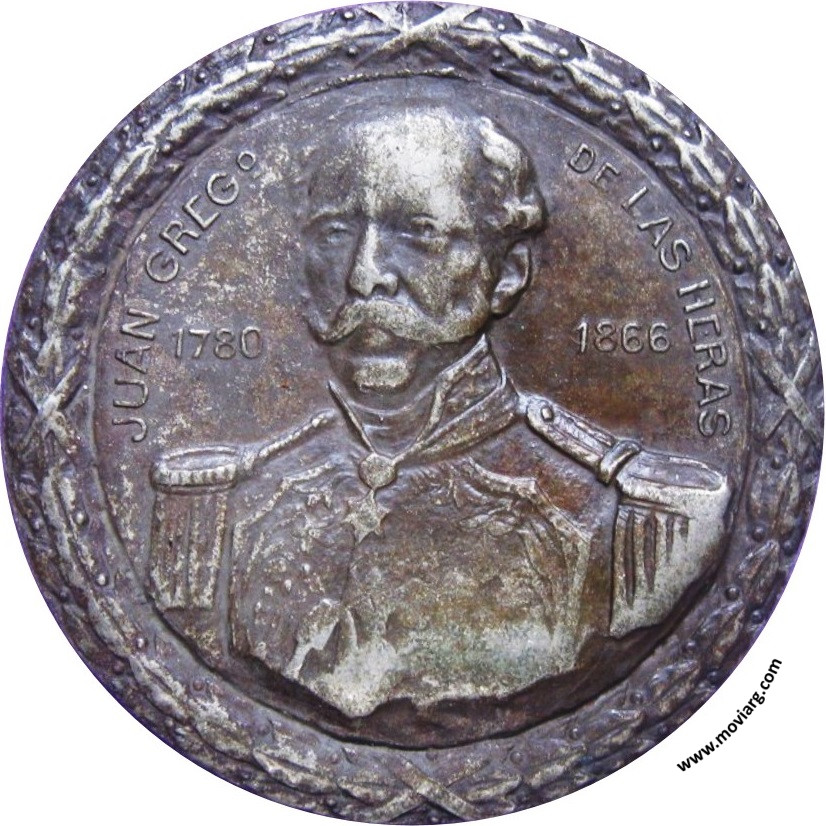 Anverso: JUAN GREGO. / DE LAS HERAS / 1780 / 1866 Reverso: HOMENAJE DE LA PARROQUIA / LAS HERAS / REIMPATRIACION (sic) DE SUS RESTOS / 20 OCTUBRE 1906 - BOS. AIRES Referencia: | |