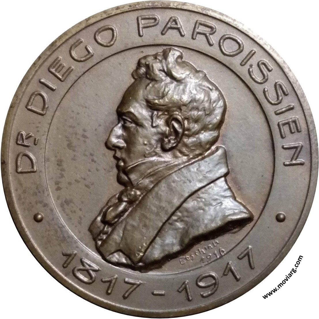 Colección @parryyanumismatico Anverso: DR. DIEGO PAROISSIEN / 1817-1917. Firma: ROSCHIAN / 1916Reverso: HOMENAJE / DE LA / SANIDAD MILITAR / ARGENTINA / AL / CIRUJANO MAYOR / DEL EJÉRCITO LIBERTADOR / EN EL 1ER. CENTENARIO / DEL / PASO DE LOS ANDES. Firma: GOTTUZZO Y CA. Referencia: | |