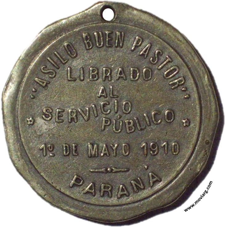 Anverso: CHARITAS Reverso: "ASILO BUEN PASTOR" / LIBRADO / AL / SERVICIO / PÚBLICO / 1° DE MAYO 1910 / PARANÁ Referencia: | |