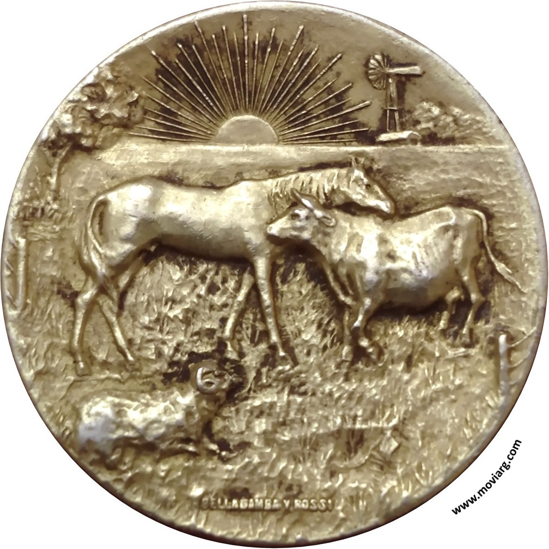 Colección Matías Losinno Anverso: SOCIEDAD RURAL DEL 9 DE JULIO / [ PIO. CAMPEON ] / [ J. ORTIZ DE ROZAS ] / [ 1908 ] / PROVINCIA DE BUENOS AIRESReverso: Firma: BELLAGAMBA Y ROSSI Referencia: | |