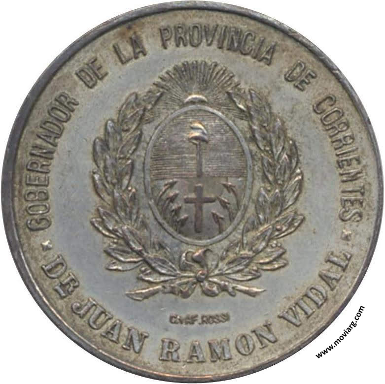 Anverso: INAUGURACION DE LA LINEA FERREA / DE LA / CAPITAL Á GENERAL PAZ / ABRIL DE 1911. Firma: C. Y AF. ROSSI Reverso: GOBERNADOR DE LA PROVINCIA DE CORRIENTES / DR. JUAN RAMON VIDAL. Firma: C.Y AF. ROSSI Referencia: | |