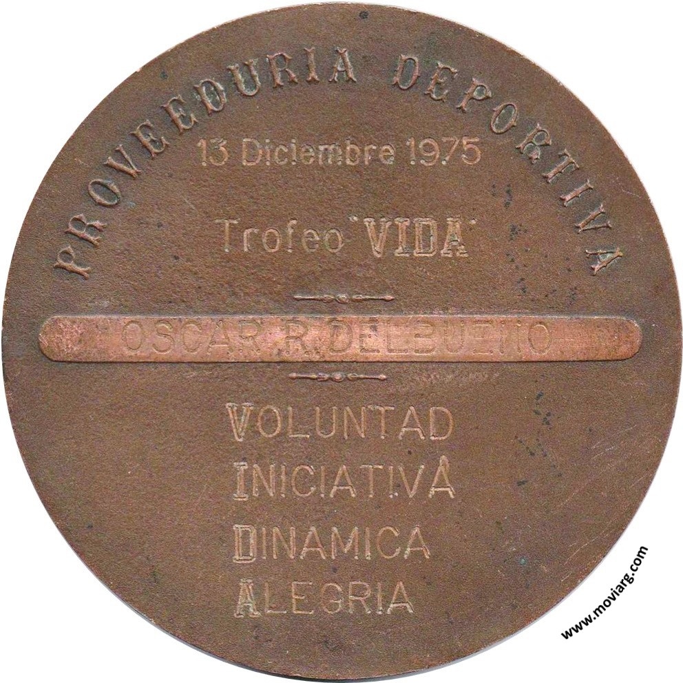 Anverso: Reverso: PROVEEDURIA DEPORTIVA / [ 13 DICIEMBRE 1975 ] / [ TROFEO " VIDA " ] / [ OSCAR R. DELBUENO ] / [ VOLUNTAD ] / [ INICIATIVA ] / [ DINAMICA ] / [ ALEGRIA ] Referencia: | |