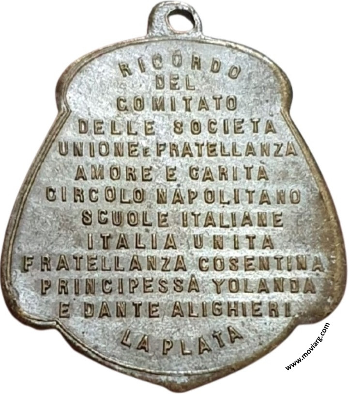 Anverso: A / ROMA / CI SIAMO / E CI / RESTEREMO / XX SETTEMBRE / 1870 - 1907. Firma: A. BIDOGLIA. Campo: S.P.Q.R. Reverso: RICORDO / DEL / COMITATO / DELLE SOCIETÁ / UNIONE E FRATELLANZQA / AMORE E CARITA / CIRCOLO NAPOLITANO / SCUOLE ITALIANE / ITALIA UNITA / FRATELLANZA COSENTINA / PRINCIPESSA YOLANDA / E DANTE ALIGHIERI / LA PLATA Referencia: | |