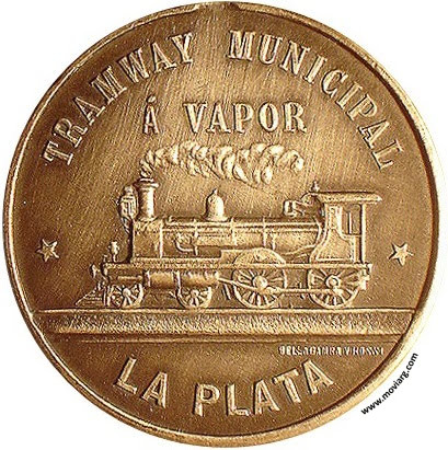 Anverso: TRAMWAY MUNICIPAL / Á VAPOR / LA PLATA. Firma: BELLAGAMBA Y ROSSI Reverso: INAUGURADO / EL / 30 SETIEMBRE 1902 Referencia: | |
