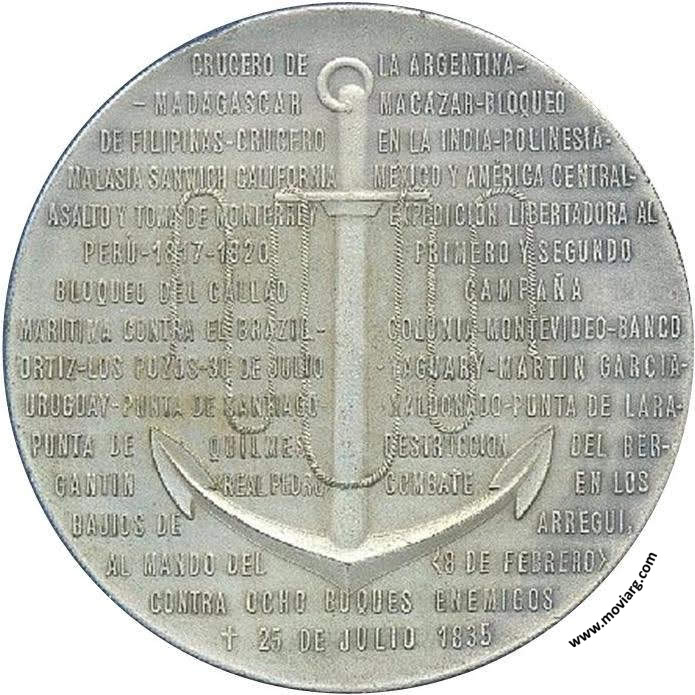 Anverso: CENTENARIO DEL NACIMIENTO DEL CORONEL TOMÁS ESPORA / LA MUNICIPALIDAD DE BUENOS AIRES / GUERRERO / DE LA / INDEPENDENCIA / ARGENTINA / 1800 / 19 / SETIEMBRE / 1900. Firma: BELLAGAMBA Y ROSSI Reverso: CRUCERO DE / LA ARGENTINA - / - MADAGASCAR / MACAZAR - BLOQUEO / DE FILIPINAS - CRUCERO / EN LA INDIA - POLINESIA - / MALASIA SANWICH CALIFORNIA / MEXICO Y AMÉRICA CENTRAL - / ASALTO Y TOMA DE MONTERREY / EXPEDICIÓN LIBERTADORA AL / PERÚ - 1817 - 1820 / PRIMERO Y SEGUNDO / BLOQUEO DEL CALLAO / CAMPAÑA / MARITIMA CONTRA EL BRAZIL - / COLONIA - MONTEVIDEO - BANCO / ORTIZ - LOS POZOS - 30 DE JULIO - / - TACUARY - MARTIN GARCIA - / URUGUAY - PUNTA DE SANTIAGO / MALDONADO - PUNTA DE LARA - / PUNTA DE / QUILMES / DESTRUCCION / DEL BER- / GATIN / REAL PEDRO / COMBATE / EN LOS / BAJIOS DE / ARREGUI / AL MANDO DEL / < 8 DE FEBRERO > / CONTRA OCHO BUQUES ENEMIGOS / † 25 DE JULIO 1835 Referencia: | |