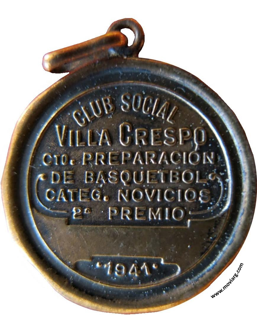 Anverso: Campo: C. S. / V. C. Reverso: CLUB SOCIAL / VILLA CRESPO / CTO. PREPARACIÓN / DE BASQUETBOL / CATEG. NOVICIOS / 2° PREMIO / 1941 Referencia: | |