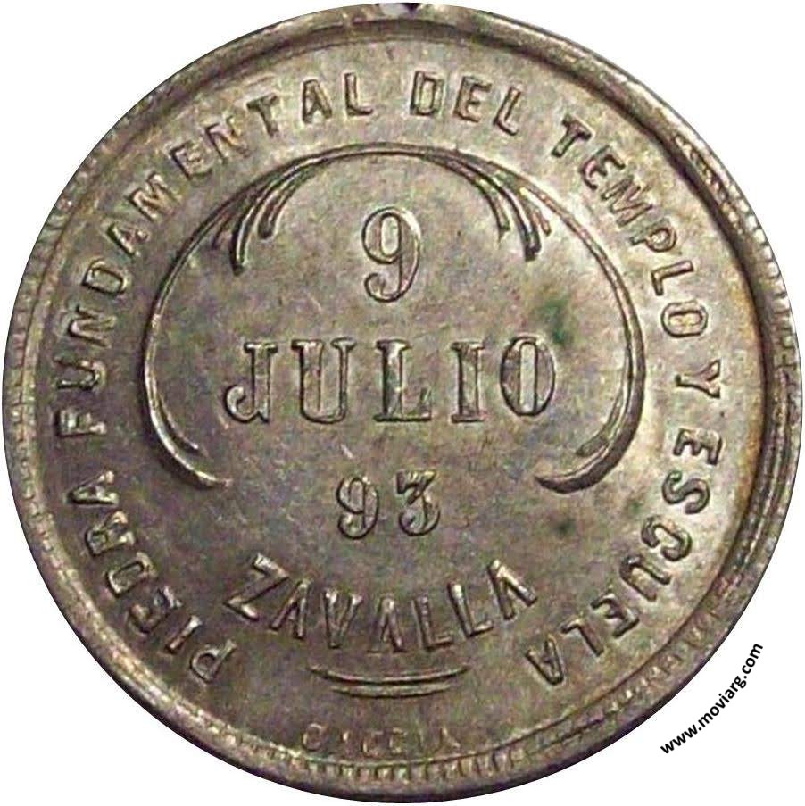 | Año: 1893 Religión Metal: Estaño - Peso: 9.1gr - Módulo: 27mm - Rotación: 12hrs Grabador: Santiago Caccia | |