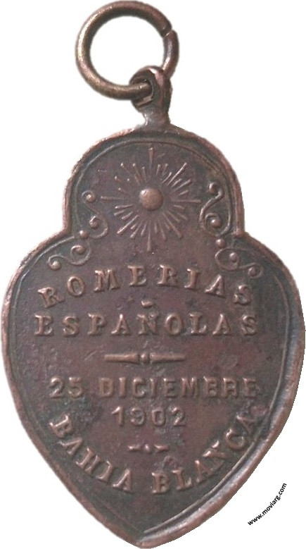 Anverso: CONFRATERNIDAD Reverso: ROMERIAS / ESPAÑOLAS / 25 DICIEMBRE / 1902 / BAHIA BLANCA Referencia: | |