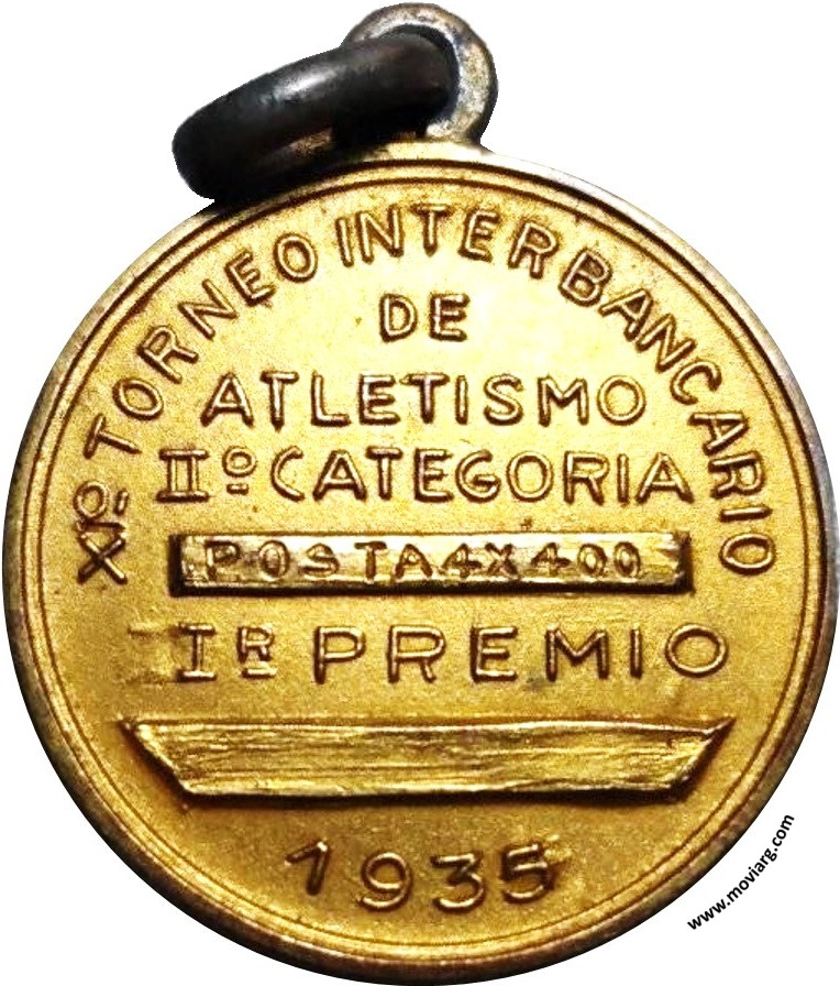 Colección @parryyanumismatico Anverso: ASOCIACION BANCARIA ARGENTINA / DE DEPORTES. Campo: A / B / A / D. Anilla: [ 900 ]Reverso: X [ I ]° TORNEO INTERBANCARIO / DE / ATLETISMO / II° CATEGORIA / [ POSTA 4 X 400 ] / IR. PREMIO / 1935 Referencia: | |