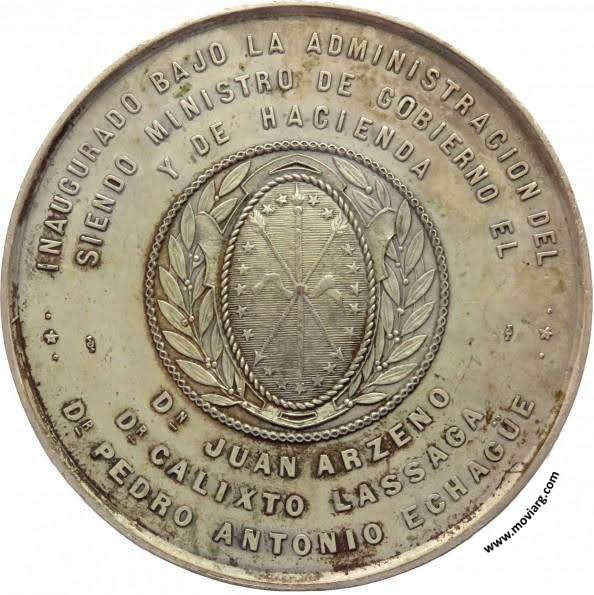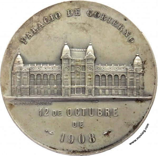 Anverso: PALACIO DE GOBIERNO / 12 DE OCTUBRE / DE / 1908. Firma: A. COSTA HUGUET Reverso: INAUGURADO BAJO LA ADMINISTRACION DEL / DR. PEDRO ANTONIO ECHAGÜE / SIENDO MINISTRO DE GOBIERNO EL / DR. CALIXTO LASSAGA / Y DE HACIENDA / DN. JUAN ARZENO Referencia: | |