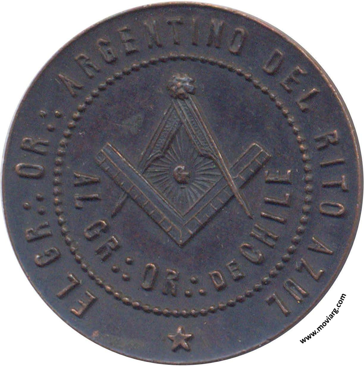 Anverso: EL GR .·. OR .·. ARGENTINO DEL RITO AZUL / AL GR .·. OR .·. DE CHILE Reverso: PAZ UNION Y PROGRESO / MAYO 27 1903 / E .·. V .·. / BUENOS AIRES Referencia: | |