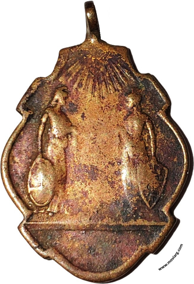 | Año: 1901 Romerías Metal: Cobre - Peso: 7.96gr - Módulo: 26.10x39.34mm - Espesor: 1.81mm - Rotación: 12hrs | |
