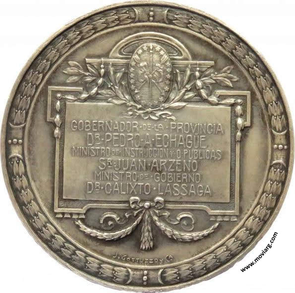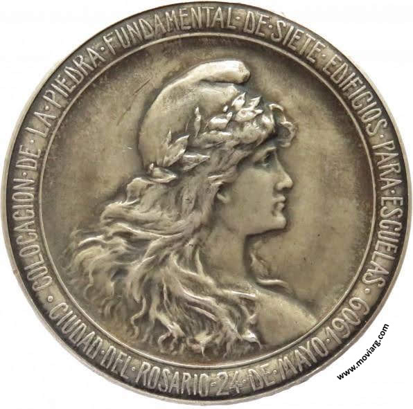 Anverso: COLOCACION · DE · LA · PIEDRA · FUNDAMENTAL · DE · SIETE · EDIFICIOS · PARA · ESCUELAS / CIUDAD · DEL · ROSARIO - 24 · DE · MAYO · 1909 Reverso: GOBERNADOR · DE · LA · PROVINCIA / DR. PEDRO · A · ECHAGÜE / MINISTRO · DE · INSTRUCCION · Y · O. · PUBLICAS / SR. JUAN · ARZENO / MINISTRO · DE · GOBIERNO / DR. CALIXTO · LASSAGA. Firma: J. GOTTUZZO Y CA. Referencia: | |