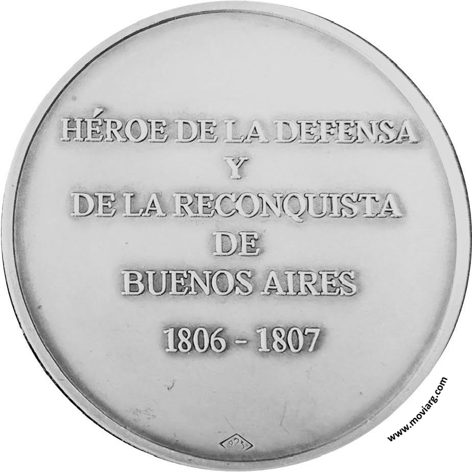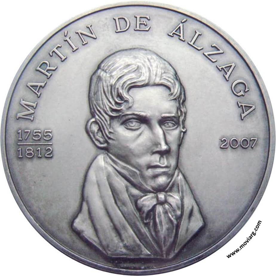 Anverso: MARTÍN DE ÁLZAGA / 1755 / 1812 / 2007 Reverso: HÉROE DE LA DEFENSA / Y / DE LA RECONQUISTA / DE / BUENOS AIRES / 1806 - 1807. Exergo: [ < 925 > ] Canto: Liso Referencia: | |