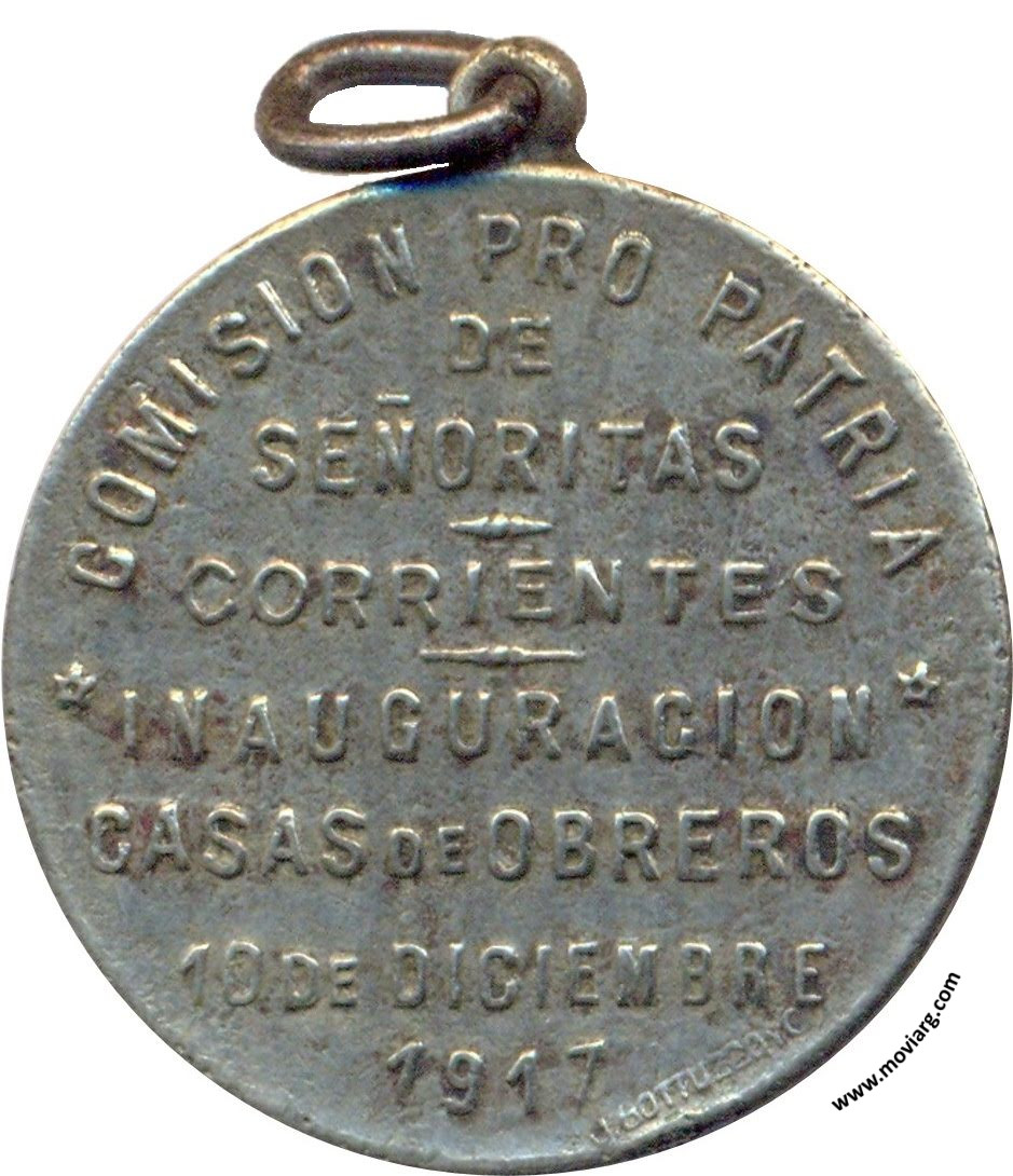 Anverso: TRABAJO Y / HONRADEZ Reverso: COMISION PRO PATRIA / DE / SEÑORITAS / CORRIENTES / INAUGURACION / CASAS DE OBREROS / 10 DE DICIEMBRE / 1917. Firma: J. GOTTUZZO Y C. Referencia: | |