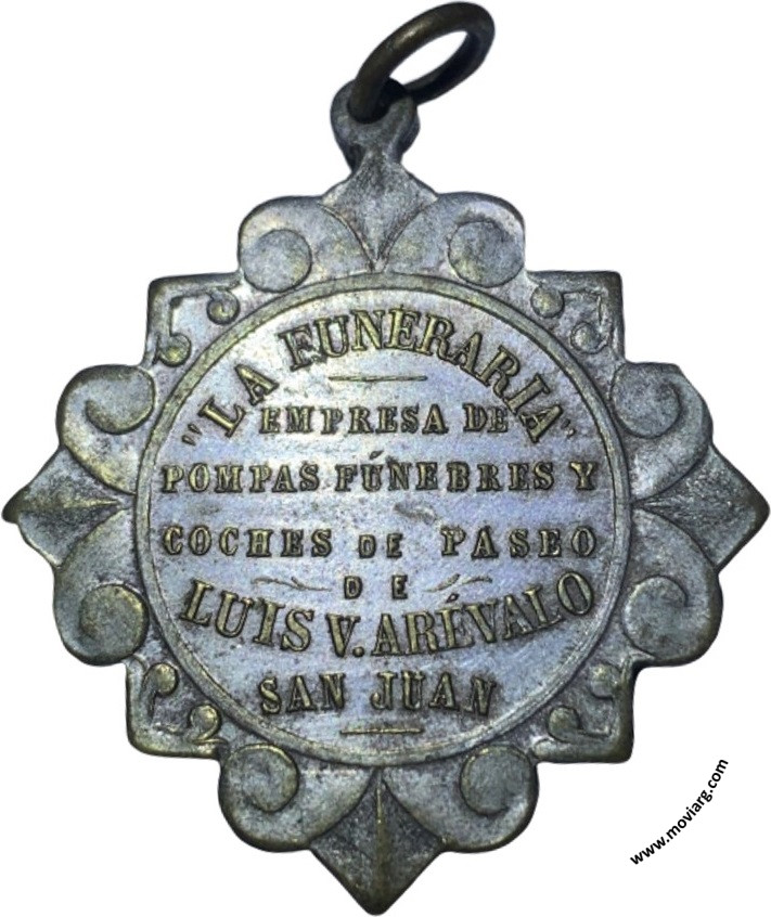 Colección Magnin Anverso: " LA FUNERARIA " / EMPRESA DE / POMPAS FÚNEBRES Y / COCHES DE PASEO / DE / LUIS V. ARÉVALO / SAN JUANReverso: SE TRASLADÓ / A SU NUEVO LOCAL / CALLE GRAL. ACHA 268 / FRENTE AL TEMPLO / DE / SANTA ROSA Referencia: | |