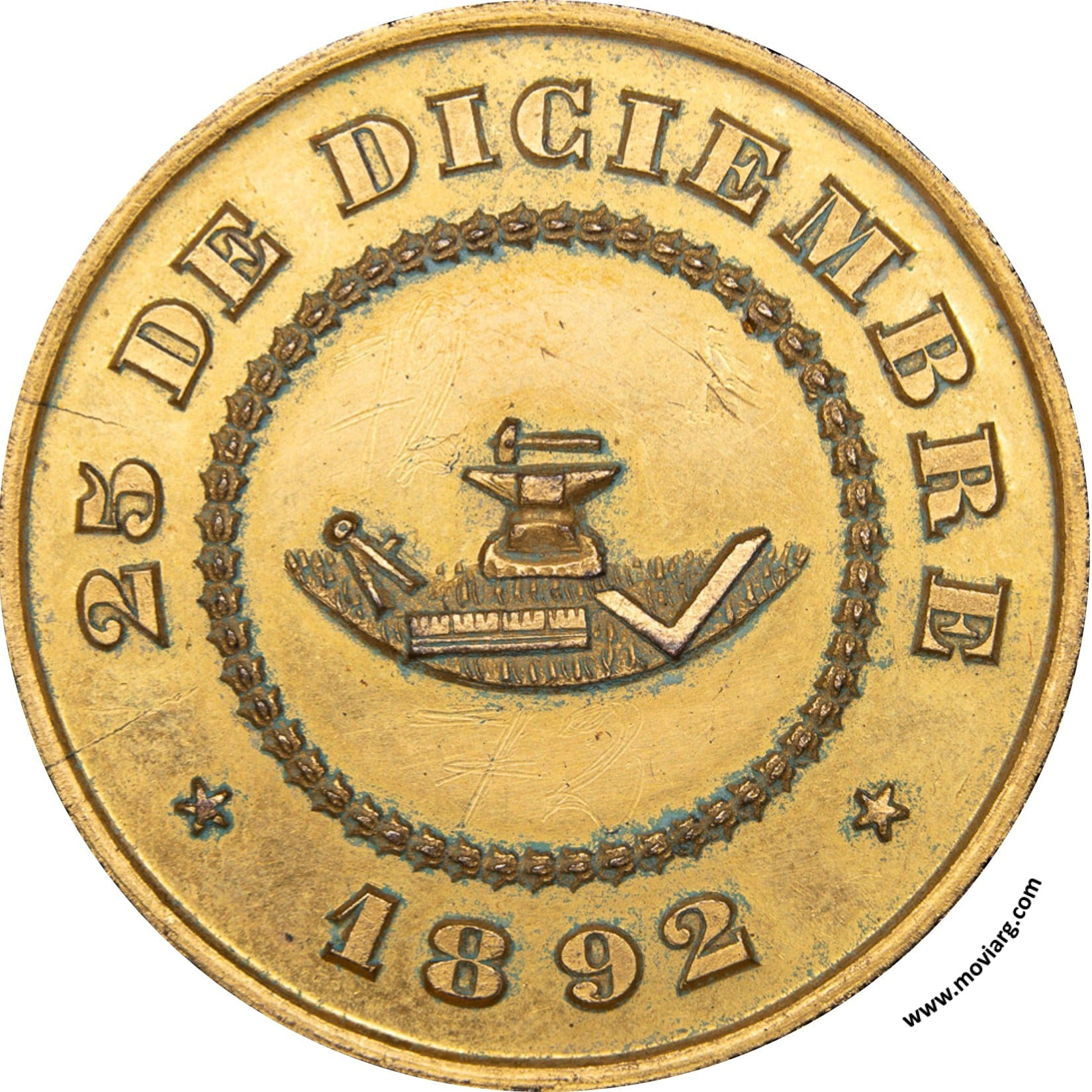 rp numis Anverso: LA SOCIEDAD DE BORRACHONES DE SAN FERNANDO / Á LA SOCIEDAD / ARTESANOS DEL DIQUE. Firma: GRANDEReverso: 25 DE DICIEMBRE / 1892 Referencia: FERRARI-211 (RG) | |