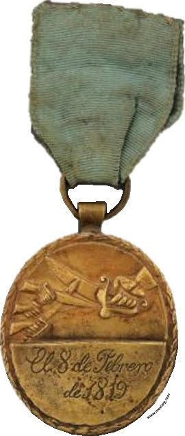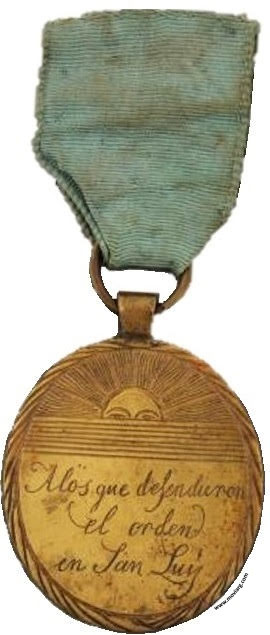 Anverso: A LOS QUE DEFENDIERON / EL ORDEN / EN SAN LUIS Reverso: EL 8 DE FEBRERO / DE 1819 Referencia: ROSA-/17 | |
