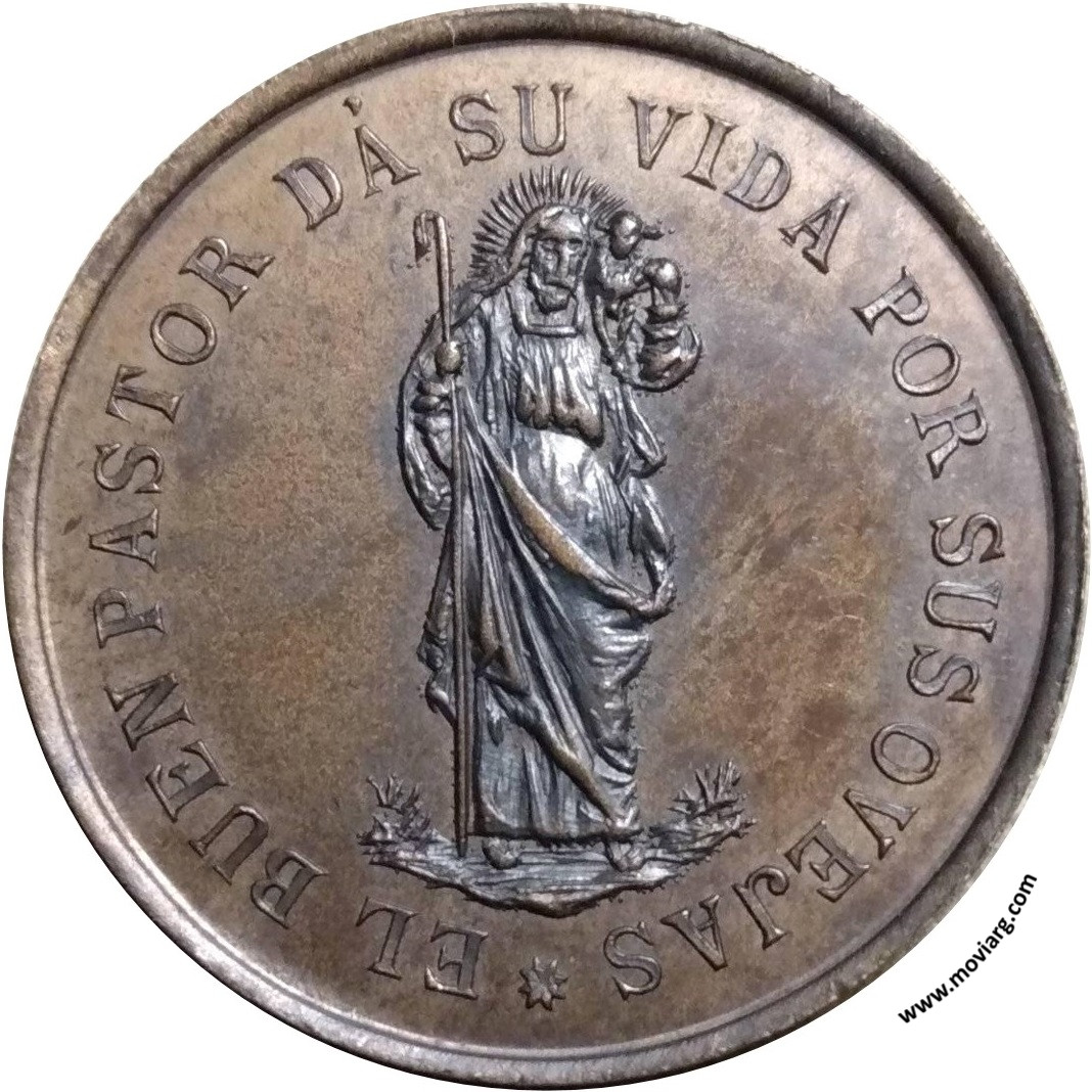 Colección @parryyanumismatico Anverso: EL BUEN PASTOR DÁ SU VIDA POR SUS OVEJASReverso: PIEDRA FUNDAMENTAL DEL TEMPLO / SOCIEDAD DE BENEFICENCIA / DEL / BUEN PASTOR / DE SAN LUIS / MARZO DE / 1889 Referencia: | |