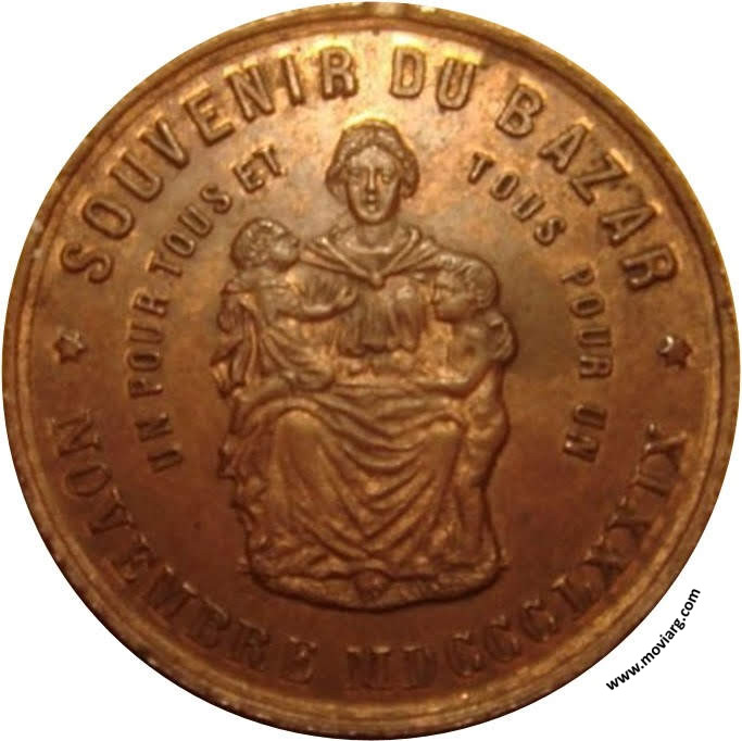 Anverso: SOCIÉTÉ PHILANTHROPIQUE SUISSE / Á / BUENOS AIRES Reverso: SOUVENIR DU BAZAR / UN POUR TOUS ET. / TOUS POUR UN / NOVEMBRE MDCCCLXXIX Referencia: | |