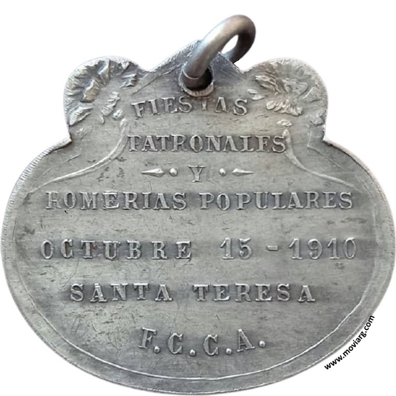 Anverso: Firma: HORTA Y CIA Reverso: FIESTAS / PATRONALES / Y / ROMERIAS POPULARES / OCTUBRE 15 - 1910 / SANTA TERESA / F.C.C.A. (Ferrocarril Central Argentino) Referencia: | |