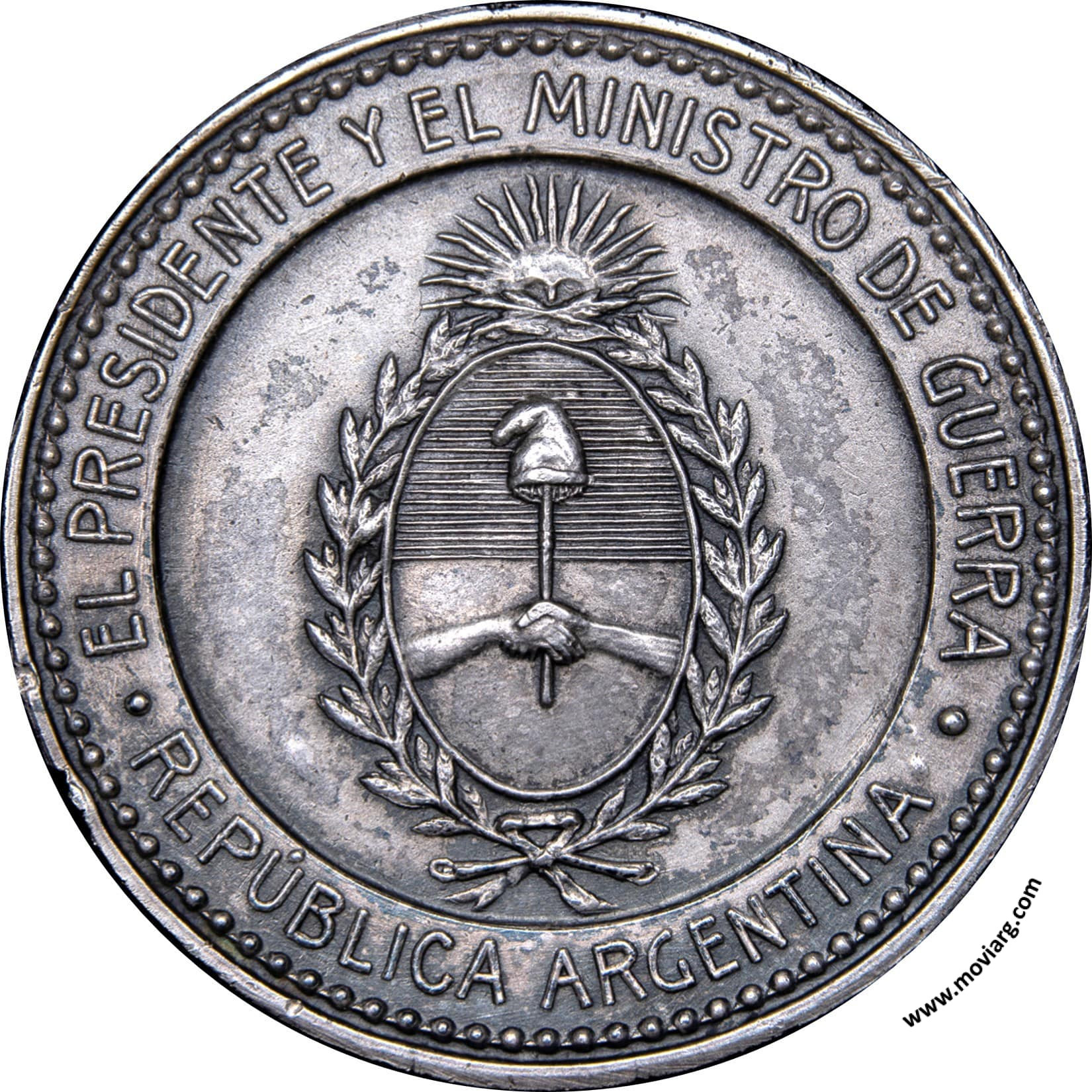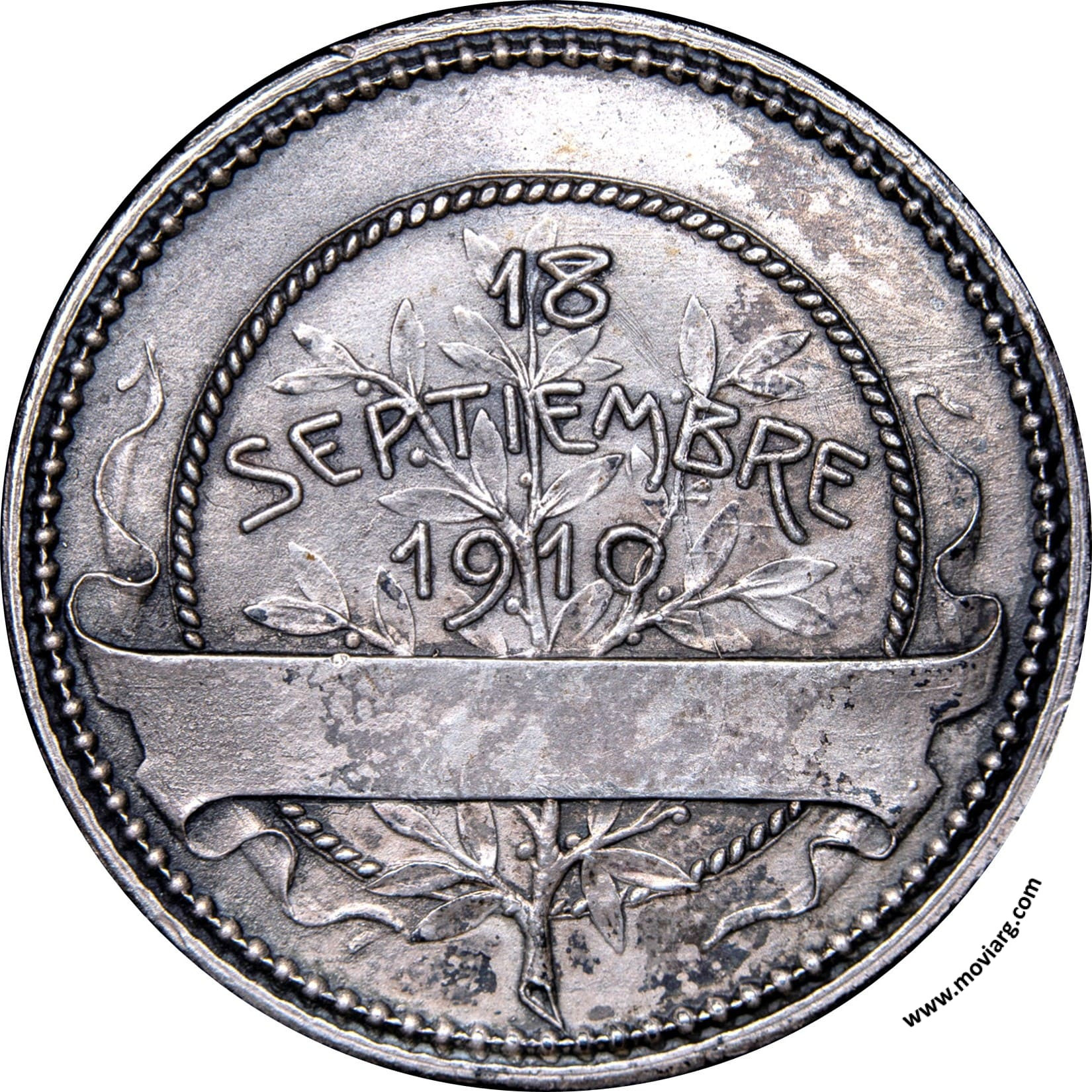 rp numis Anverso: EL PRESIDENTE Y EL MINISTRO DE GUERRA / REPÚBLICA ARGENTINAReverso: 18 / SEPTIEMBRE / 1910 Canto: Liso. PLATA Referencia: | |