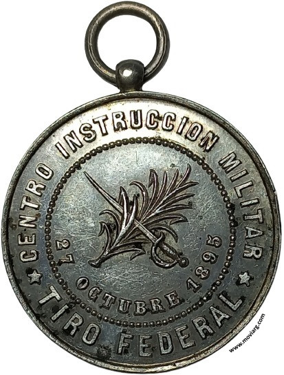 Anverso: CENTRO INSTRUCCION MILITAR / TIRO FEDERAL / 27 OCTUBRE 1895 Reverso: CONCURSO LIBRES DEL SUD / DOLORES / [ 2° ] / PREMIO Referencia: | |