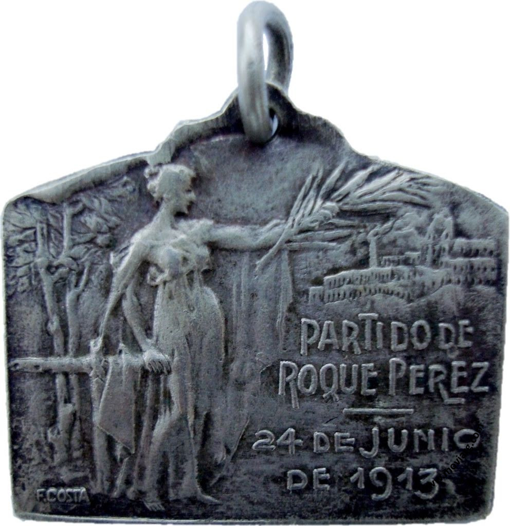 Anverso: PARTIDO DE / ROQUE PEREZ / 24 DE JUNIO / DE 1913. Firma: F. COSTA Reverso: CONMEMORACIÓN / DE LA / AUTONOMIA / 20 DE JULIO DE 1913 Referencia: | |