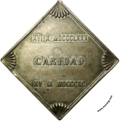Anverso: SOCIEDAD / DAMAS / PROTECTORAS / DEL / HOSPITAL. Firma: ORZALI B. Y C. Reverso: XVI-X-MDCCCLXXX / CARIDAD / XV-IX-MDCCCXC Referencia: | |