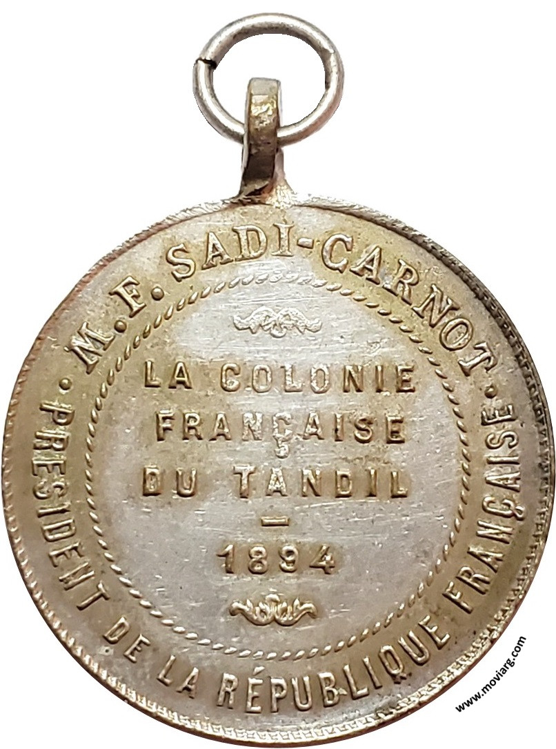Anverso: Firma: ORZALI B. Y C. / BUENOS AIRES Reverso: M. F. SADI-CARNOT / PRESIDENT DE LA RÉPUBLIQUE FRANÇAISE / LA COLONIE / FRANÇAISE / DU TANDIL / 1894 Referencia: FERRARI-14 (TN) | |