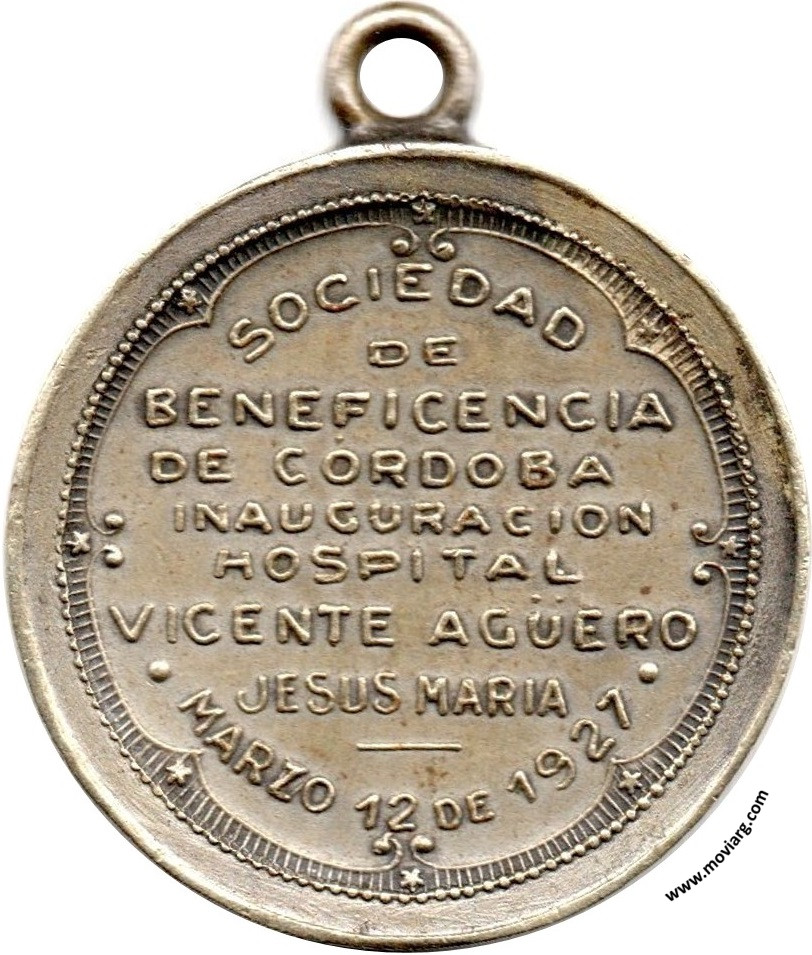 Anverso: Firma: HORTA Reverso: SOCIEDAD / DE / BENEFICENCIA / DE CÓRDOBA / INAUGURACION / HOSPITAL / VICENTE AGÜERO / JESUS MARIA / MARZO 12 DE 1927 Referencia: | |