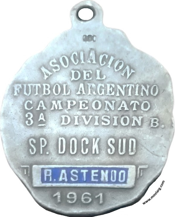 Anverso: Campo: AFA Reverso: ASOCIACION / DEL / FUTBOL ARGENTINO / CAMPEONATO / 3A. DIVISION B. / SP. DOCK SUD / [ R. ASTENDO ] / 1961. Exergo: [ 900 ] Referencia: | |