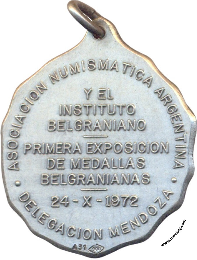 Anverso: MANUEL BELGRANO / 1770 / 1820 Reverso: ASOCIACION NUMISMATICA ARGENTINA / DELEGACION MENDOZA / Y EL / INSTITUTO / BELGRANIANO / PRIMERA EXPOSICION / DE MEDALLAS / BELGRANIANAS / 24 - X - 1972 Referencia: | |