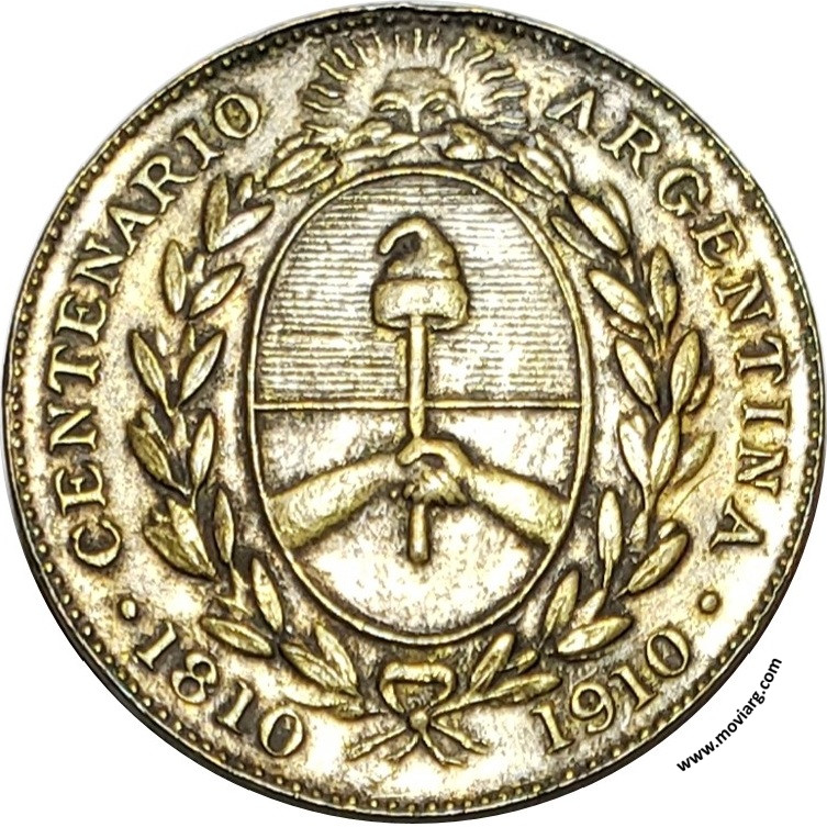 Anverso: Reverso: CENTENARIO ARGENTINA / 1810 1910 Referencia: | |