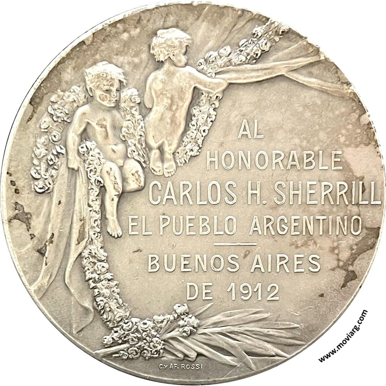 Anverso: Firma: C. Y AF. ROSSI Reverso: AL / HONORABLE / CARLOS H. SHERRILL (Charles Hitchcock Sherrill) / EL PUEBLO ARGENTINO / BUENOS AIRES / DE 1912. Firma: C. Y AF. ROSSI Referencia: | |