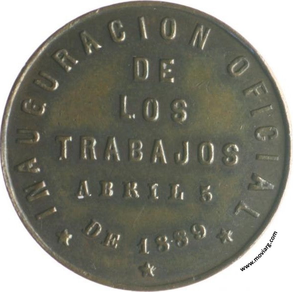 Anverso: FERRO CARRIL TRASANDINO / VIA / USPALLATA Reverso: INAUGURACION OFICIAL / DE / LOS / TRABAJOS / ABRIL 5 / DE 1889 Referencia: | |