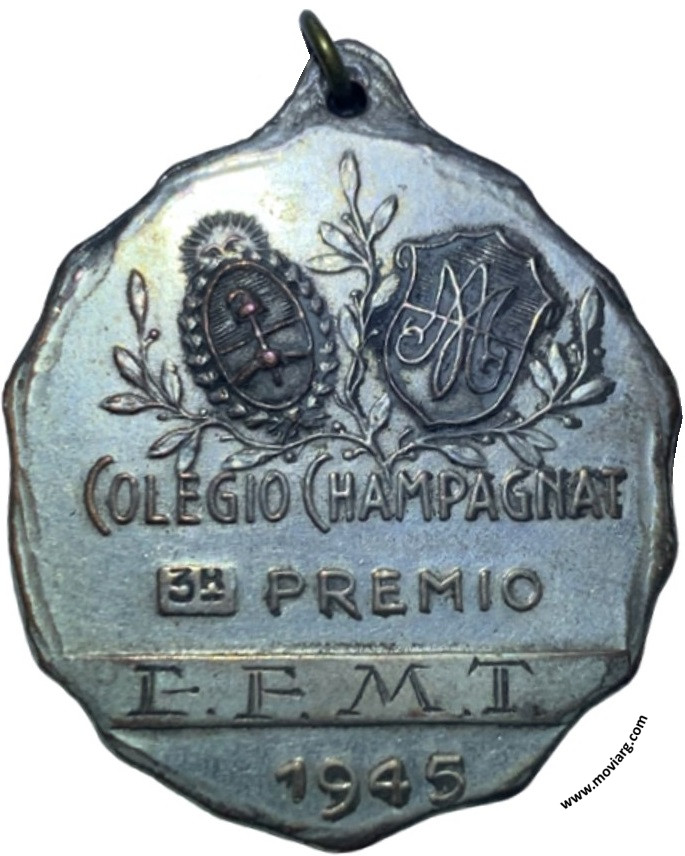 Colección Magnin Anverso:Reverso: COLEGIO CHAMPAGNAT / [ 3R. ] PREMIO / [ F. F. M. T. ] / 1945 Referencia: | |