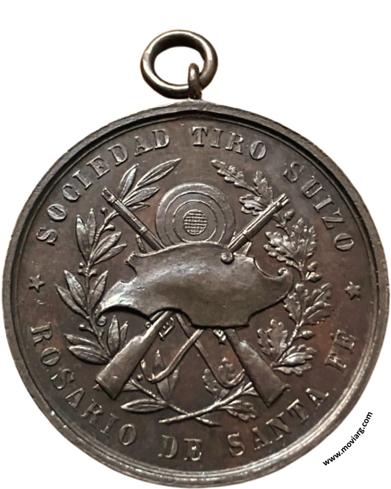 Anverso: APRENDE Á / DEFENDER / LA PATRIA. Firma: (???) E. LOSSIER & V. SCHLÜTTER (???) Reverso: SOCIEDAD TIRO SUIZO / ROSARIO DE SANTA FE Referencia: | |
