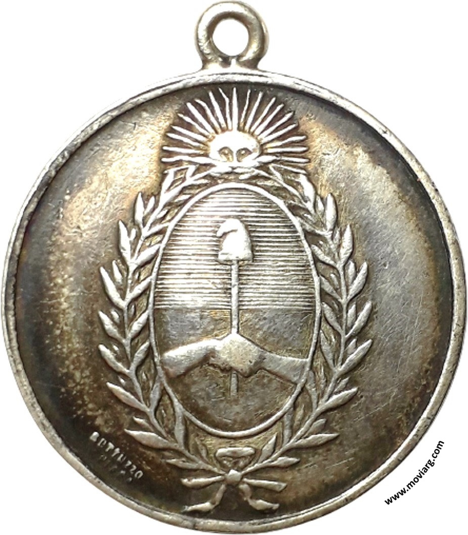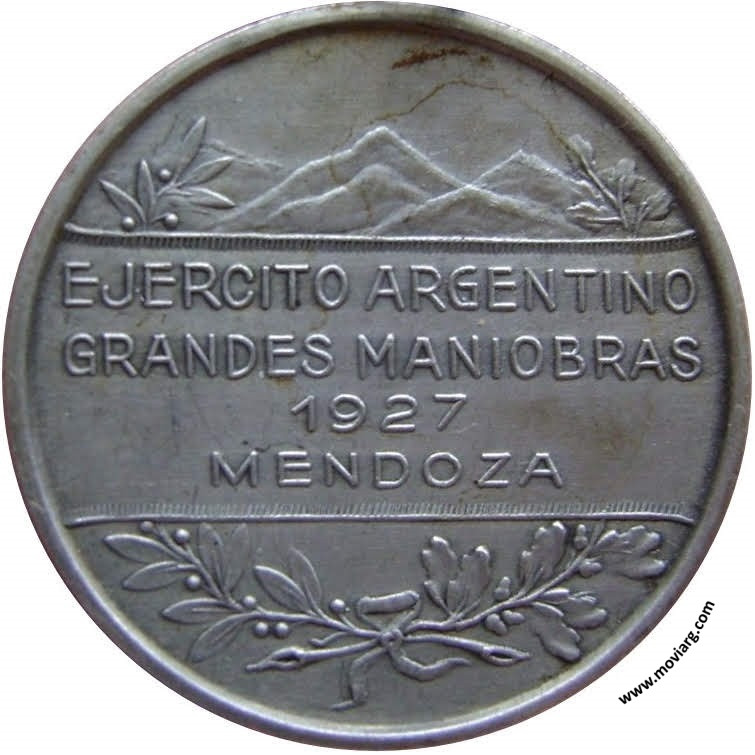 Anverso: Firma: GOTTUZZO / Y PIANA Reverso: EJERCITO ARGENTINO / GRANDES MANIOBRAS / 1927 / MENDOZA Canto: Liso. PLATA Referencia: | |