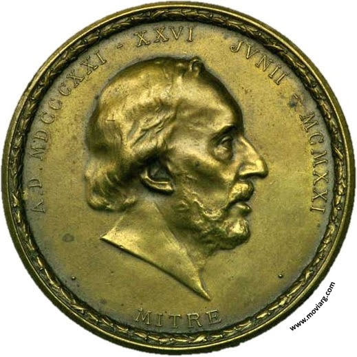 Anverso: A.D. MDCCCXXI - XXVI JVNII - MCMXXI / MITRE Reverso: SPARGIT SEMINA QVÆ ALTERI SÆCVLO PROSINT. Firma: ROGELIO YRURTIA Referencia: | |