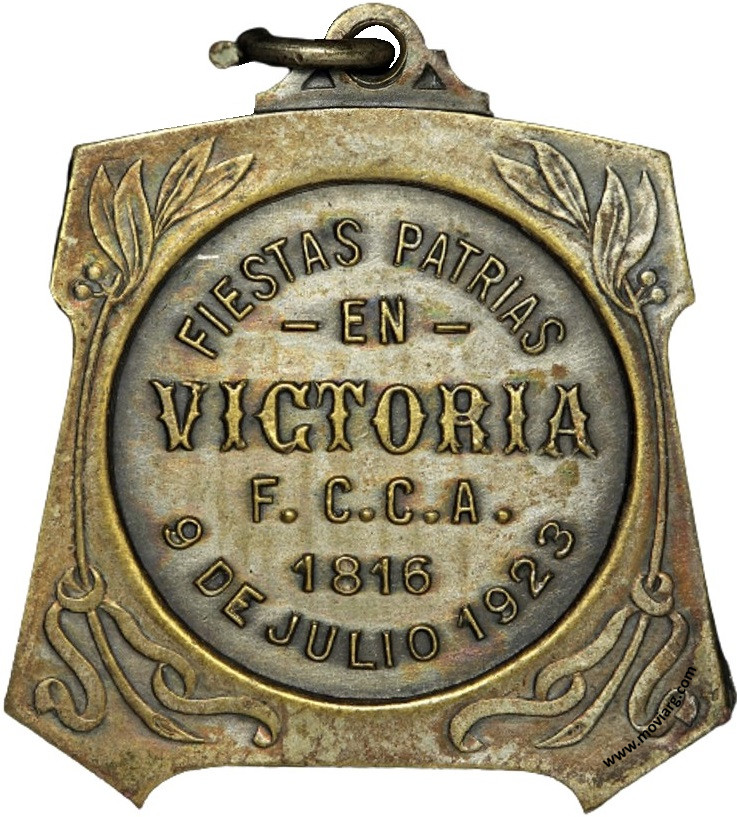 Anverso: Firma: CONST. ROSSI Reverso: FIESTAS PATRIAS / EN / VICTORIA / F.C.C.A. / 1816 / 9 DE JULIO 1923 Referencia: | |